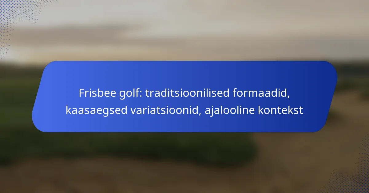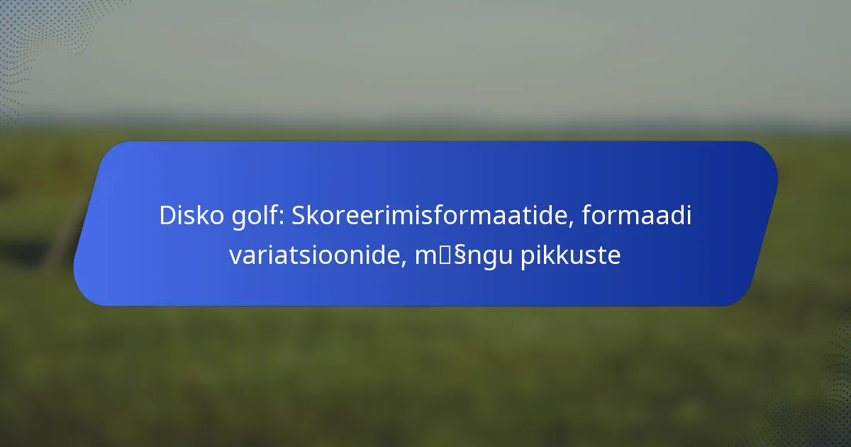 Disc golf sisaldab mitmeid skoorimisformaatide, mis vastavad erinevatele mängijate eelistustele ja konkurentsitasemetele. Peamised formaadid, nagu löögimäng, matšimäng ja meeskonnamäng, toovad igaühega kaasa unikaalsed reeglid ja strateegiad, mis mõjutavad mängu ja mängijate taktikat. Nende formaatide mõistmine võib suurendada mängu üldist kogemust ja naudingut. Key sections in the article: Toggle Millised on peamised skoorimisformaatid disc golfis? Löögimängu…